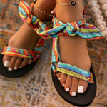 Colorful Boho Flat Sandals with Bow