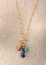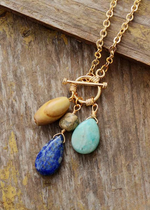 Gold Boho Necklace - Amazonite and Lapis Pendant