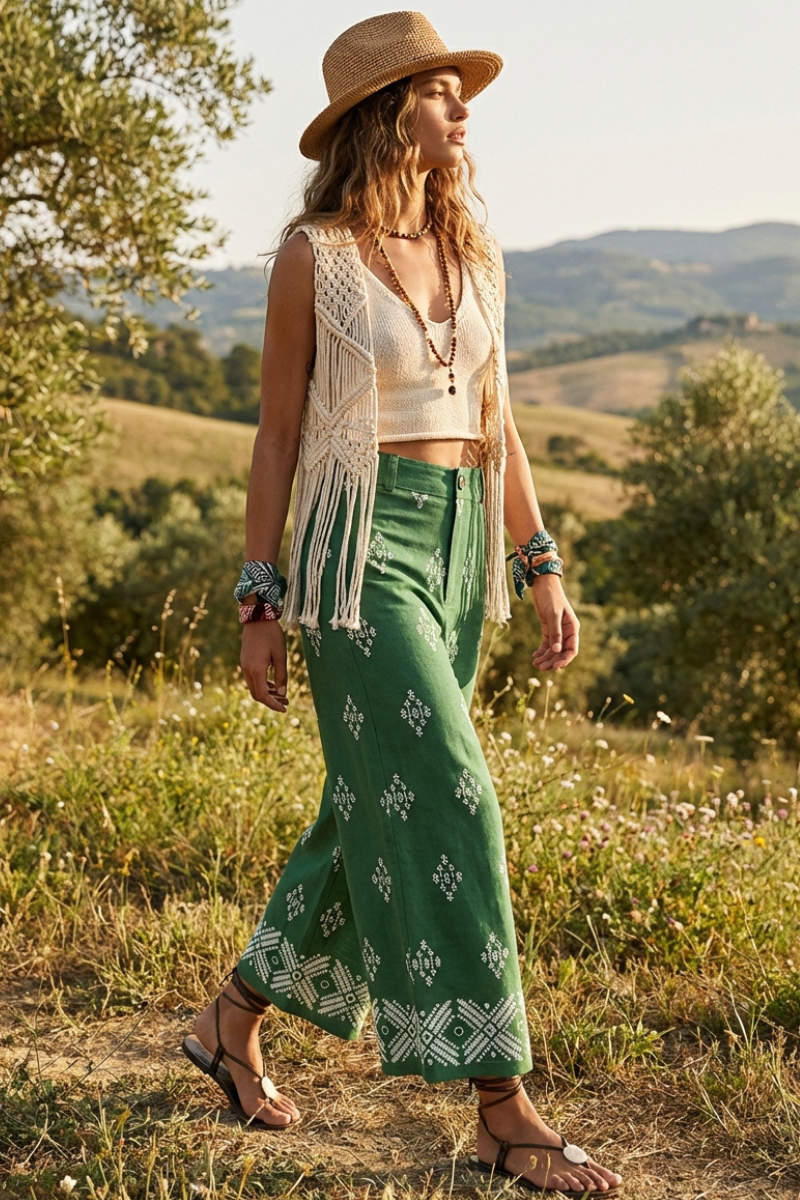 Green Boho Hippie Pant : an elegant, on-trend choice for women who want to add a unique touch of style to their wardrobe