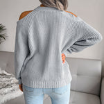 Upgrade Your Wardrobe with Our Gray Boho Sweater Featuring Openwork Shoulders and Free Shipping!