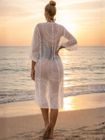 Blending the airy feel of a sheer cardigan with delicate embroidered details, this kimono is a refined statement of effortless elegance. Crafted from high-quality, lightweight fabric, it offers breathable comfort on warm summer days while its pristine white tone adds a fresh, luminous touch. Perfect over a swimsuit for a bohemian chic vibe or styled with jeans for a casual evening out, this versatile piece elevates any outfit with timeless charm.