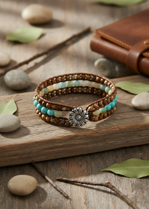 Discover our Leather Wrap Boho Bracelet that combines boho elegance with a touch of rusticity