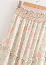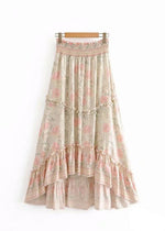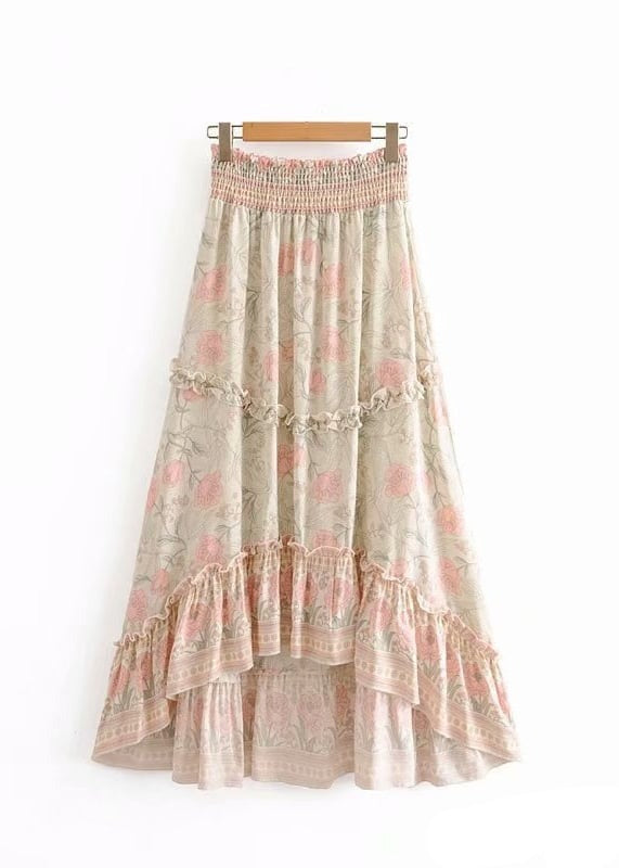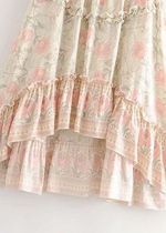 Long asymmetrical Beige Skirt Boho floral pattern