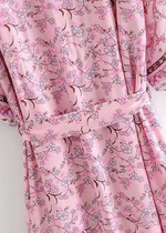 Long Boho Chic Belted Kimono Pink Floral