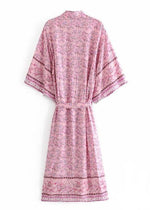 Turn Heads with our Long Boho Chic Belted Kimono in Pink Floral - Stylish and Comfortable!