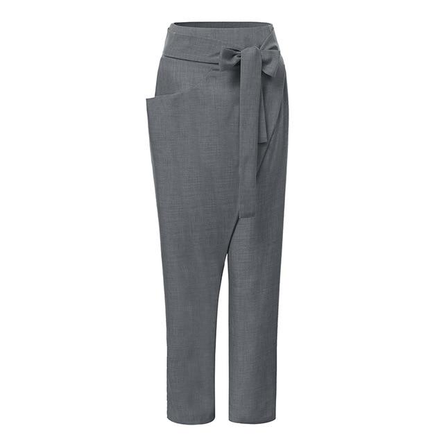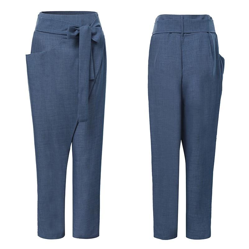 Description of the Mid-length Pants with pockets, zipper fly with tie belt