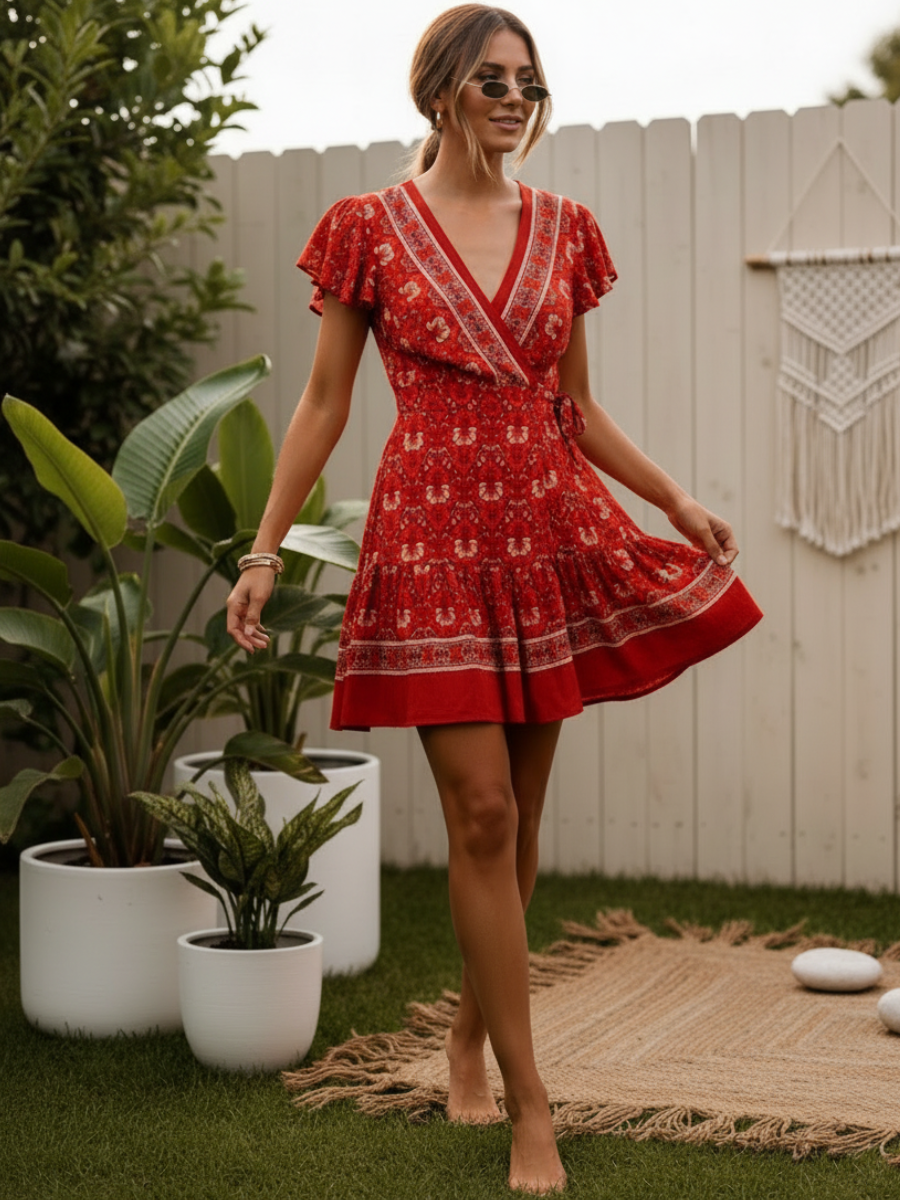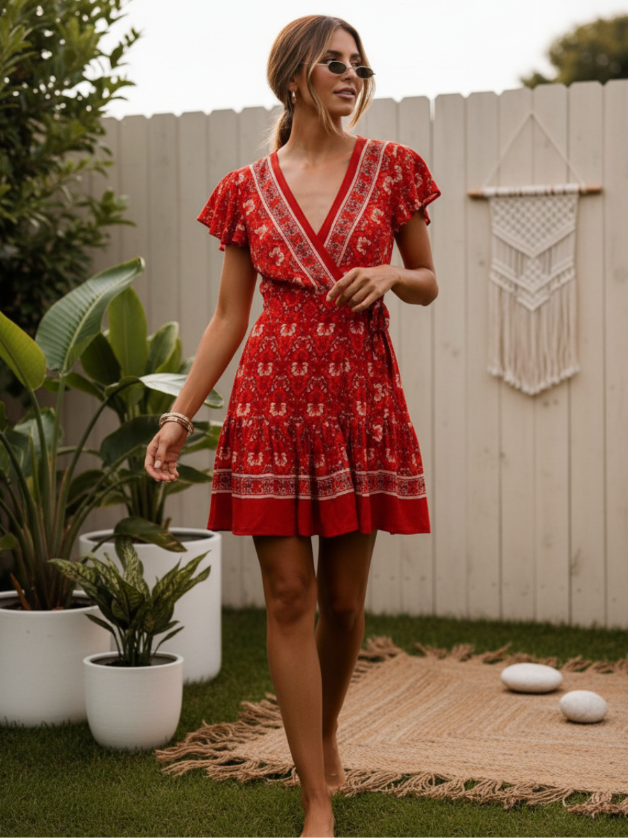This chic red boho mini dress adds a fresh and feminine touch to your summer style