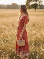 Make a statement with this elegant red Boho midi dress