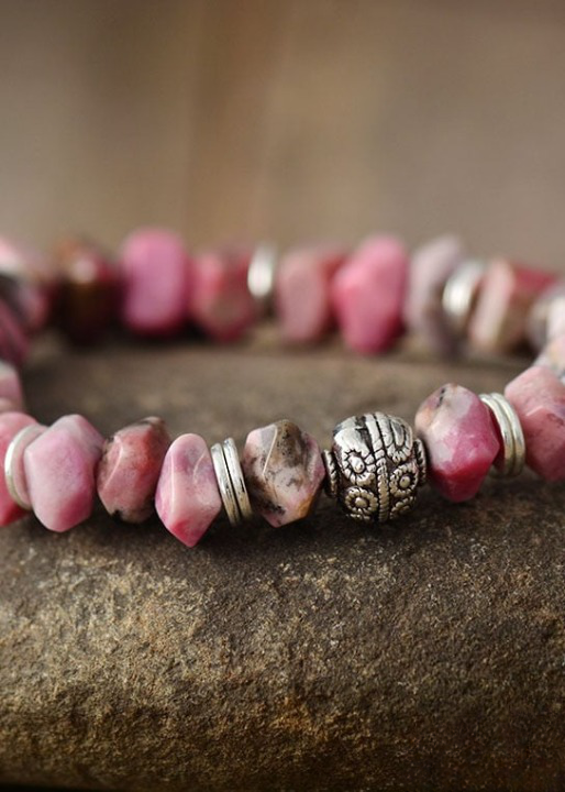 Stretchy Boho Bracelet - Natural Rhodonite : an elegant and soothing piece of jewelry that will complete your boho look