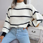 Looking for a stylish and cozy addition to your winter wardrobe? Our Striped Boho Sweater with Stand-up Collar is the perfect choice! This sweater features a beautiful striped pattern in a variety of black and white, adding a touch of boho charm to your outfit. The stand-up collar provides an extra layer of warmth, while the soft, breathable fabric keeps you comfortable all day. The relaxed fit and slightly cropped length make it easy to pair with high-waisted pants or skirts, and the versatile design is perfect for any occasion. Whether you're running errands or meeting friends, this sweater will keep you looking and feeling fashionable. Don't miss out on this must-have piece for any fashion-forward person looking to elevate their style!