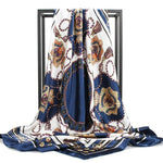 Elevate Your Style with Our Vintage White Boho Scarf with Blue and Gold Prints